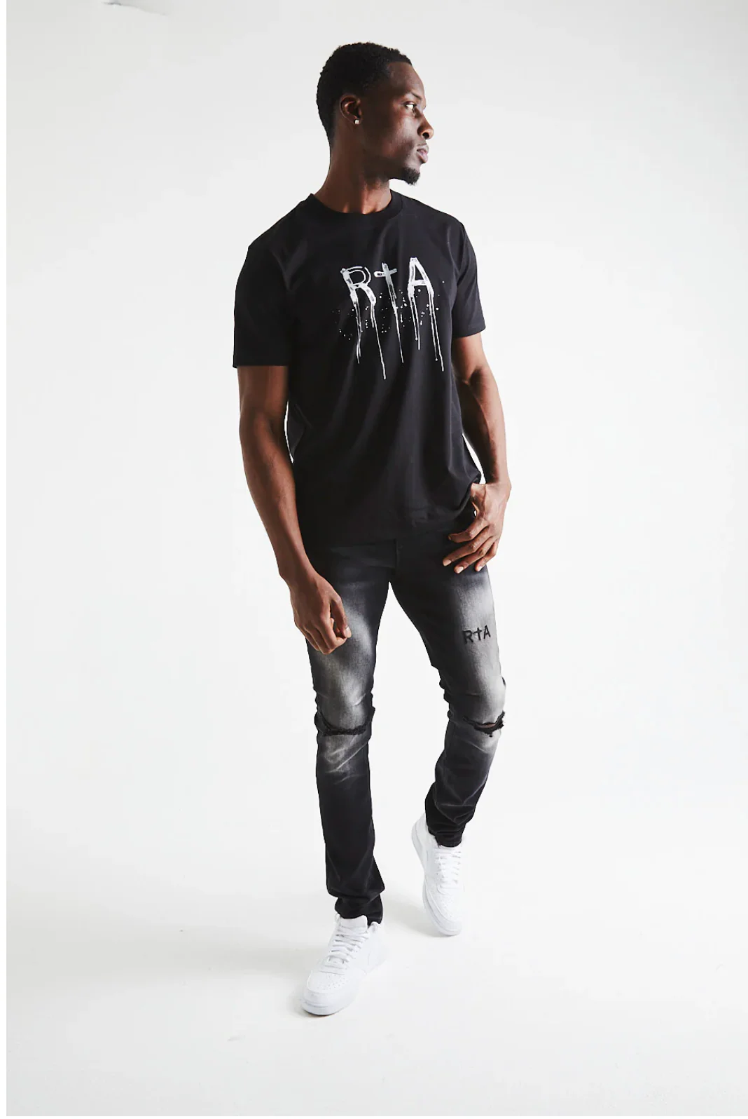 The Colin Tee in Black Watercolor features our RTA logo in a new, abstract watercolor drip design and our classic RTA logo on the back. Made with high-quality materials and 100% cotton. Pair with our Owen Sweatpant in Black Watercolor for the complete look.